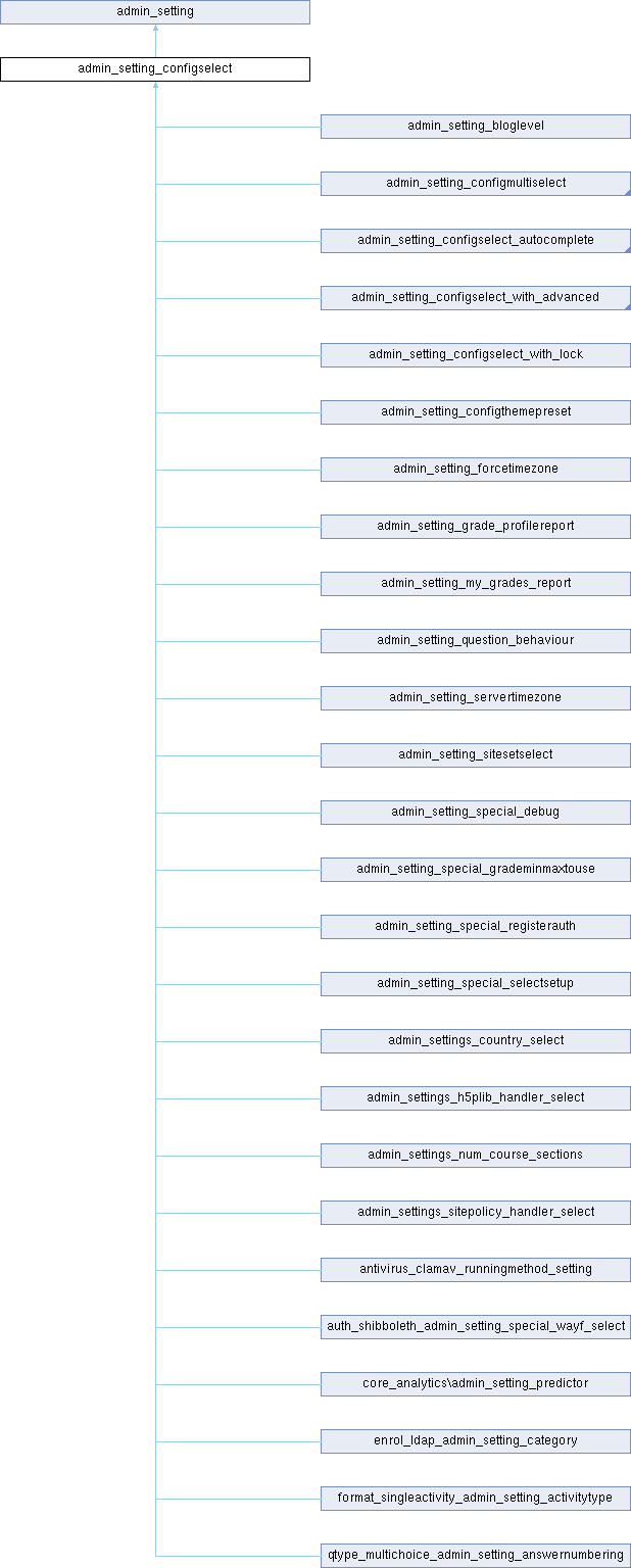 Reimplemented in format_singleactivity_admin_setting_activitytype, enrol_ldap_admin_setting_category, admin_setting_users_with_capability, admin_settings_country_select, admin_settings_num_course_sections, admin_settings_coursecat_select, admin_setting_special_debug, admin_setting_question_behaviour, admin_setting_grade_profilereport, admin_setting_my_grades_report, admin_setting_special_registerauth, admin_setting_configmultiselect_modules, admin_setting_servertimezone, admin_setting_forcetimezone, admin_settings_sitepolicy_handler_select, admin_settings_h5plib_handler_select, mod_quiz_admin_setting_browsersecurity, mod_quiz_admin_setting_grademethod, mod_quiz_admin_setting_overduehandling, mod_quiz_admin_setting_user_image, and qtype_multichoice_admin_setting_answernumbering.